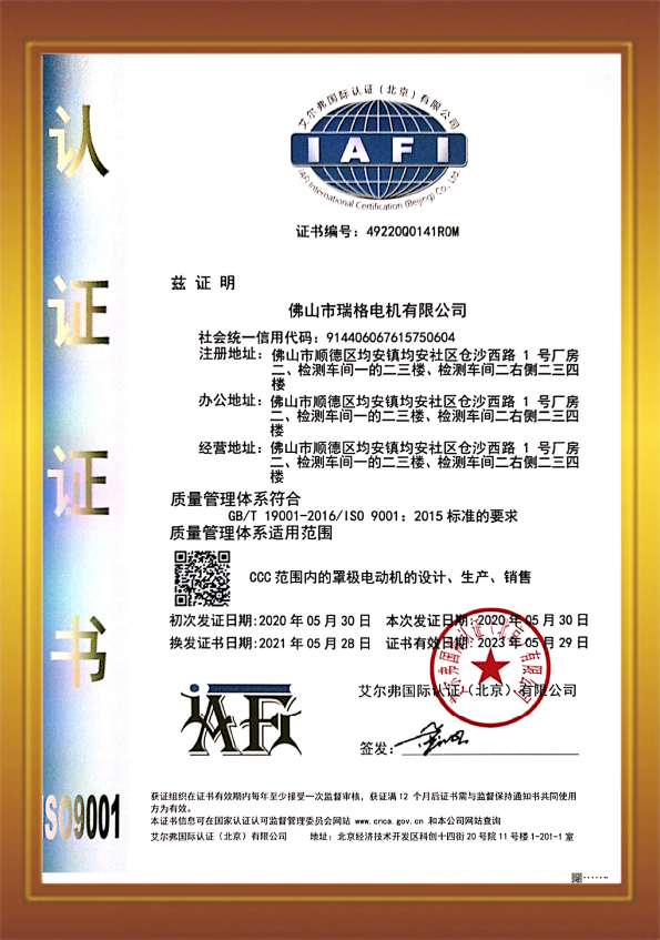 佛山市瑞格電機有限公司成立于2004年,位于中國家電之都順德,得益于獨特的地理優勢,水陸空交通十分便利。瑞格電機是一家擁有20多年設計和生產罩極電機、無刷直流電機的專業廠家,所生產的罩極電機廣泛用于烤箱、移動空調、加濕器、暖風機、電暖器、微波爐、冰箱、換氣扇、自動售貨機、抽油煙機、碎冰機等家用電器和醫療設備、教學儀器等;所生產的無刷直流電機廣泛應用于電風扇、空氣凈化器、掃地機器人、按摩槍等智能家用電器。現有員工360多人,年生產各類電機達3600余萬臺。